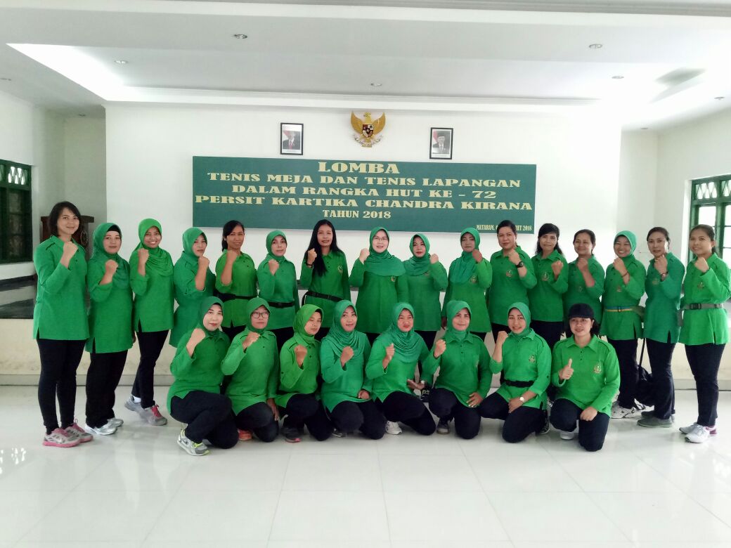 Pertandingan tennis meja dalam rangka memperingati HUT Persit ke 72 tahun 2018 dibuka secara resmi oleh Ketua Persit Kartika Candra Kirana (KCK) Koorcab 162 Makorem Ibu Selly Farid Makruf di Aula Yonif 742/SWY Gebang Mataram, Sabtu (3/3) pagi tadi.