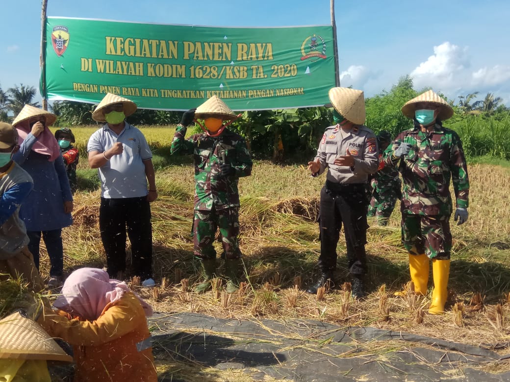 Di tengah pandemi Covid-19 di Indonesia, khususnya di Kabupaten Sumbawa Barat (KSB), Dandim 1628/Sumbawa Barat Letkol Czi Eddy Oswaronto, ST., memberikan motivasi kepada para petani untuk terus berupaya meningkatkan produksi panen gabah dalam mendukung ketahanan pangan.