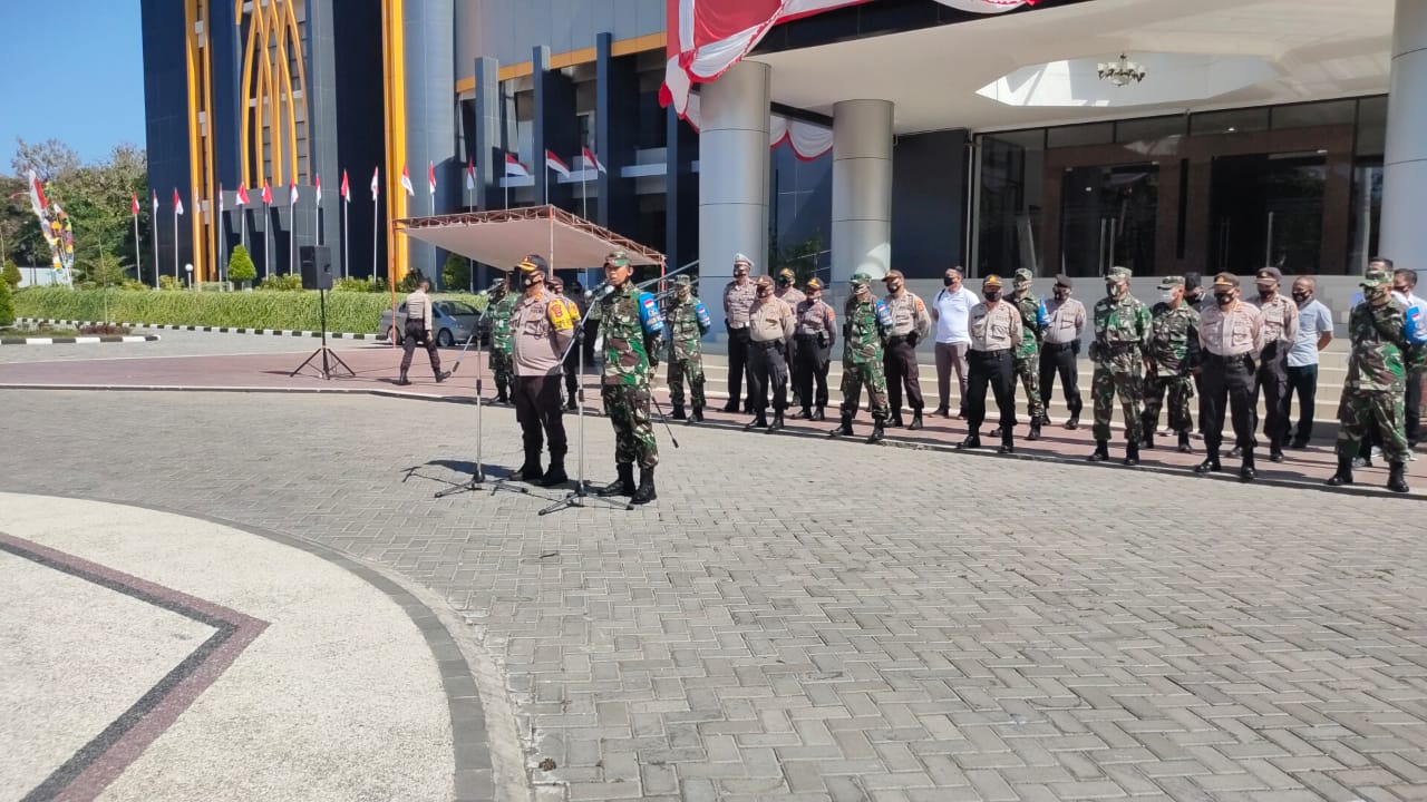 Apel sinergitas yang dipimpin langsung Komandan Kodim 1615/Lotim Letnan Kolonel Inf Agus Prihanto Donny, S.Sos., bersama Kapolres Lotim AKBP Tunggu Senatrio, S.IK., diikuti ratusan personel gabungan Kodim, Polres dan Pemeda Lotim.