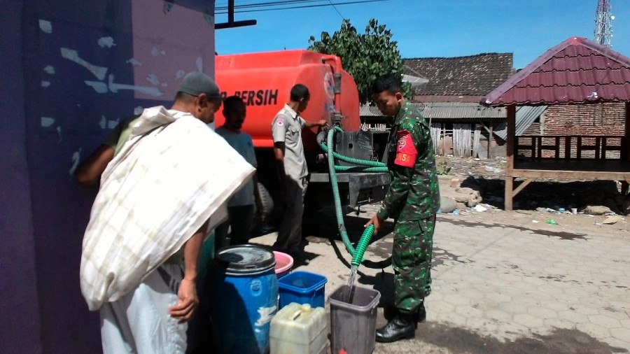 Pada musim kemarau saat ini beberapa daerah sudah mulai kekurangan air bersih seperti yang dialami warga Desa Paruga Kecamatan Rasanae Barat Kota Bima. Siang tadi, Selasa (24/7) instansi terkait di Kota Bima membagikan air dengan mengirim mobil tangki air kepada warga yang melibat aparat setempat. melihat hal tersebut, Babinsa Paruga Koramil 1608-01/Rasanae Serda Syahruddin turun langsung ikut membantu membagikannya.