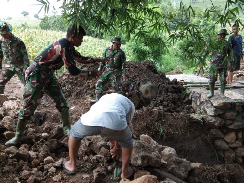 Dompu – Hujan deras terus membasahi Kabupaten Dompu menjadi salah satu kendala program fisik TMMD ke 104 tahun 2019 Kodim 1614/Dompu. Berbagai upaya terus dilakukan untuk menyelesaikan program fisik baik pembukaan jalan ekonomi, pembangunan dan perehaban Musholla, pembuatan jembatan dan duiker.