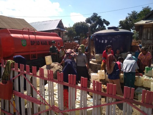 Menurut Danramil Donggo, pembagian air bersih tersebut dilakukan bekerjasama dengan PT. Pertamina Cabang Bima, BPBD dan Dinas PUPR Kabupaten Bima dalam rangka pemenuhan kebutuhan air bersih masyarakat.