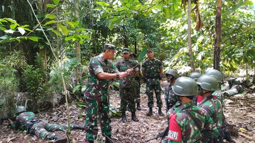 Latihan taktis regu yang langsung dipantau Danyonif 742/SWY Letnan Kolonel Inf I Gde Putu Suwardana bersama para Danki dan para Para Pasi Yonif 742/SWY.