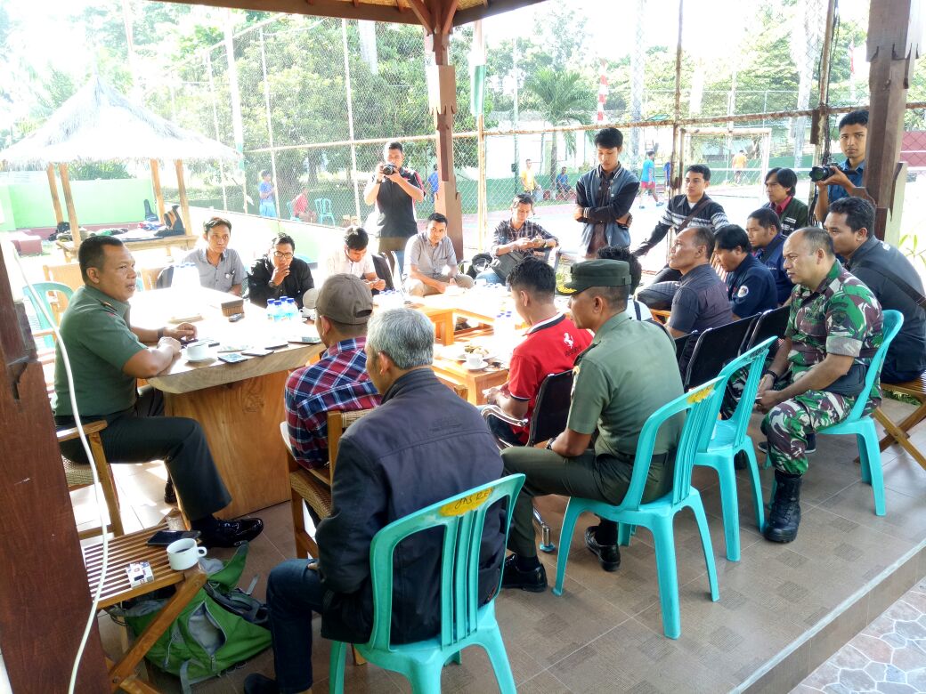 Danrem 162/WB Kolonel Inf H. Farid Makruf, M.A., disela-disela kesibukannya menyempatkan diri untuk bertatap muka dengan insan media se NTB di Lapangan tennis Yonif 742/SWY Gebang Mataram tadi pagi, Senin (16/4).