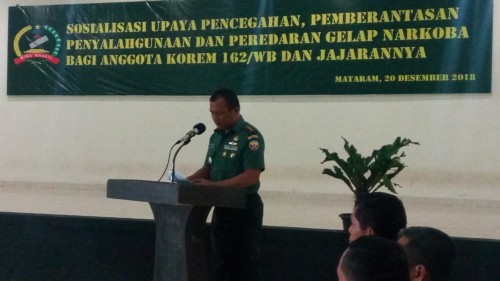 Danrem 162/WB Kolonel Czi Ahmad Rizal Ramdhani, S.Sos., SH., M.Han., dalam sambutannya yang dibacakan Kepala Staf korem Letnan Kolonel Inf Endarwan Yansori menyampaikan Narkoba sudah sangat mengkhawatirkan dan meresahkan kehidupan masyarakat, Narkoba merupakan ancaman nyata bagi negeri ini. “Pengaruh Narkoba menjadi masalah yang sangat besar bagi kelangsungan hidup berbangsa dan bernegara, ini dapat dilihat dari meningkatnya jumlah kasus kriminal,” kata Danrem.