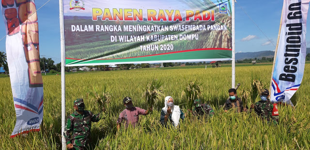 Dalam sambutannya, Dandim menjelaskan bahwa Panen raya padi ini bertujuan untuk memotivasi para petani dalam meningkatkan kualitas ketahanan pangan wilayah Kabupaten Dompu.