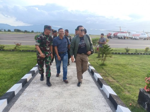 Dompu – Dandim 1614/Dompu Letnan Kolonel Czi Arief Hadiyanto, S.IP., menjemput tim pengawas dan evaluasi (Wasev) TMMD ke 104 tahun 2019 di Bandar Udara Sultan Muhammad Salahudin Bima, Rabu (20/3).