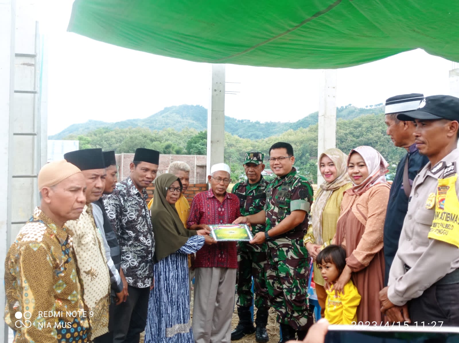 Kabupaten Bima – Letkol Inf Oktavia Englana Partadimaja Dandim 1628/Sumbawa Barat hadir secara langsung meninjau pembangunan Musholla Al Mubarok yang di bangun oleh salah satu Anggota TNI AD yang berdinas di Kodim 1628/Sumbawa barat yang berlokasi di Desa Ntoggu Kecelakaan Palibelo Kabupaten Bima (NTB) Pada hari Sabtu (15/04/2023).