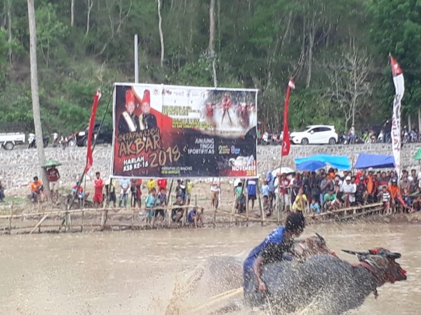 Sumbawa Barat – Sepasang kerbau kerapan yang diberi nama Gegana asal Kecamatan Maronge, Kabupaten Sumbawa berhasil keluar sebagai juara event Berapan Kebo 2018 dalam rangka Harlah KSB ke-15, Ahad (11/11/18) tadi.