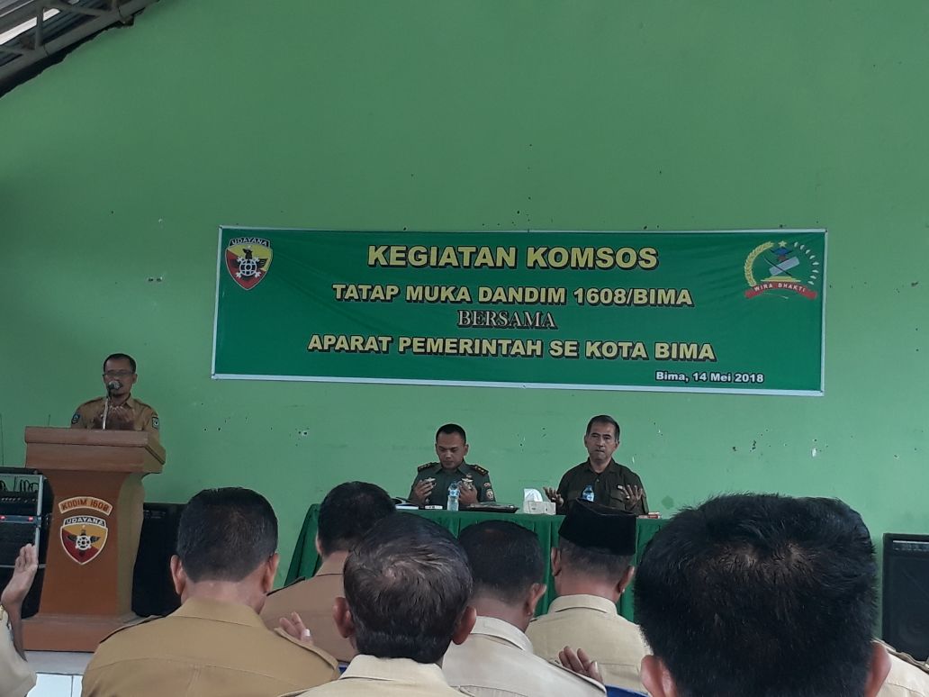 Kodim 1608/Bima menggelar tatap muka yang dikemas komunikasi sosial (Komsos) bersama unsur aparat Pemerintah Kota Bima di Makodim 1608/Bima, Senin (14/5).