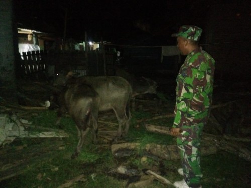Bima – Tiga orang personel Koramil 1608-07/Monta pada Sabtu malam (16/2) sekitar pukul 19.00 Wita yakni Sertu Saharullah Babinsa Tolo Tangga, Serda Rifaid Babinsa Tolouwi dan Babinsa Nonto Tera Sertu Nassaruddin berhasil menggagalkan 7 ekor kerbau yang diduga hasil curian yang diikat di sekitar pinggir Hutan Desa Tolouwi Kecamatan Monta Kabupaten Bima.
