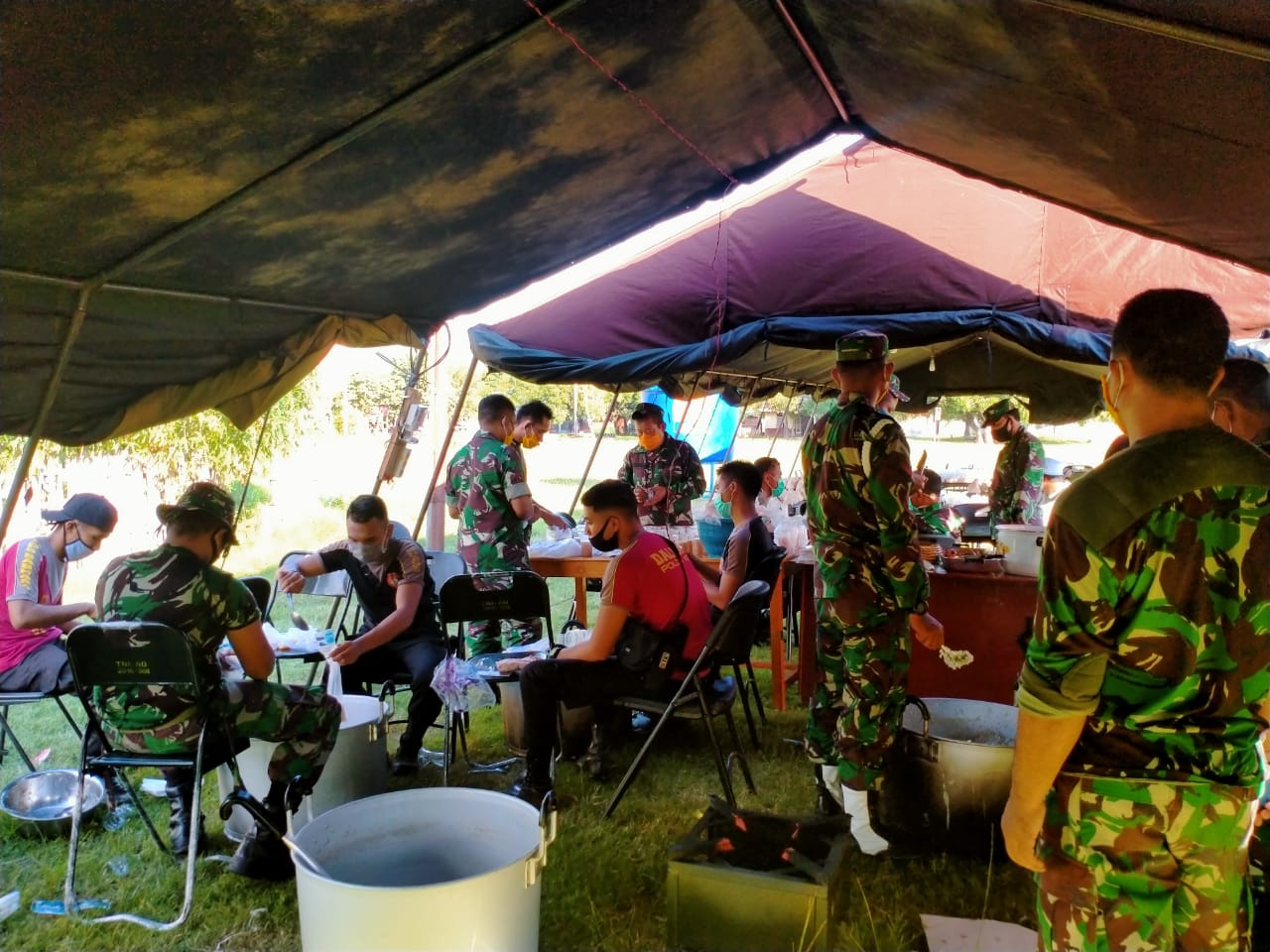 Sumbawa Barat – Dandim 1628/SB Letkol Czi Eddy Oswaronto, ST, bersama Kapolres AKBP Herman Suriyono, S.IK, beserta PJU berinisiatif membangun dapur umum dadakan dibarengi Buka Bersama (Bukber) bersama insan media.