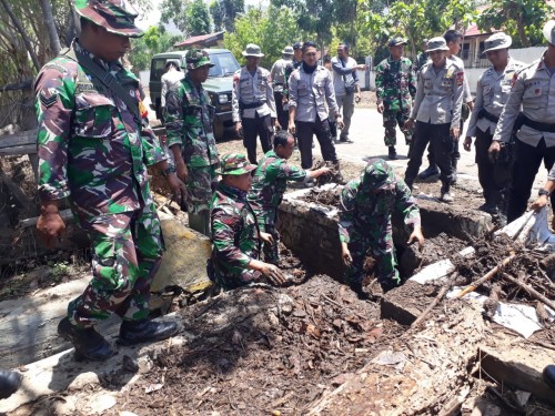 “Kami sebagai anggota TNI bersama anggota Polres Dompu terpanggil untuk membantu masyarakat maupun Pemerintah Daerah membersihkan lingkungan pasca banjir akibat hujan deras terus menerus Jumat kemarin,” kata Arif sapaan dandim Dompu.