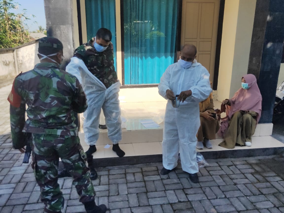 Terlihat puluhan anggota TNI dari Koramil 1615-11/Aikmel ikut membantu proses tes rafid di dua desa tempat tinggal para santri yakni Desa Kembang Kerang dan Dasan Bagek Barat Desa Aikmel Timur Kecamatan Aikmel Lombok Timur.