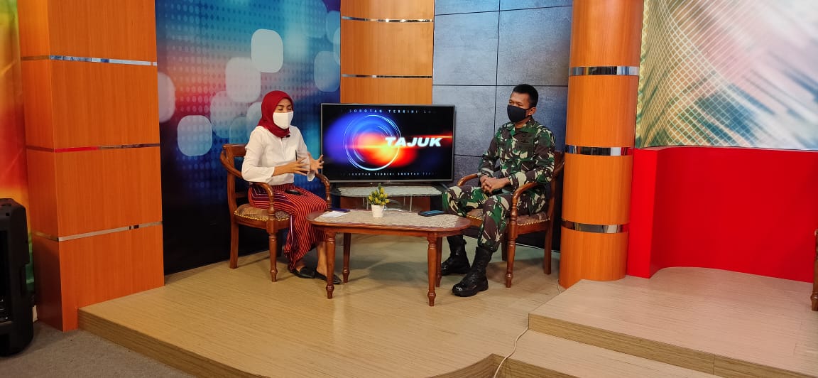 Terkait dengan itu, Komandan Kodim 1615/Lotim Letnan Kolonel Inf Agus Prihanto Donny, S.Sos., melaksanakan dialog di Studio Selaparang TV dengan presenter Sima yang mengangkat tajuk peran Kodim 1615/Lotim dalam pencegahan Covid-19 di wilayah Lombok Timur, Kamis (30/4).