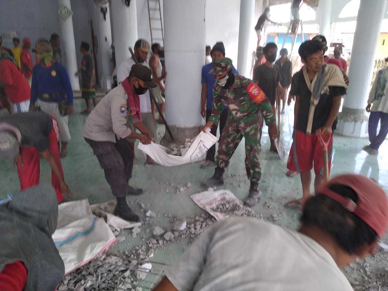 “Dinding tembok masjid yang sudah retak, dibongkar untuk dibangun kembali sehingga menjadi lebih bagus serta aman dan nyaman digunakan oleh masyarakat untuk melaksanakan ibadah sholat maupun menyelenggarakan kegiatan-kegiatan keagamaan,” terang Serda Syamsu.