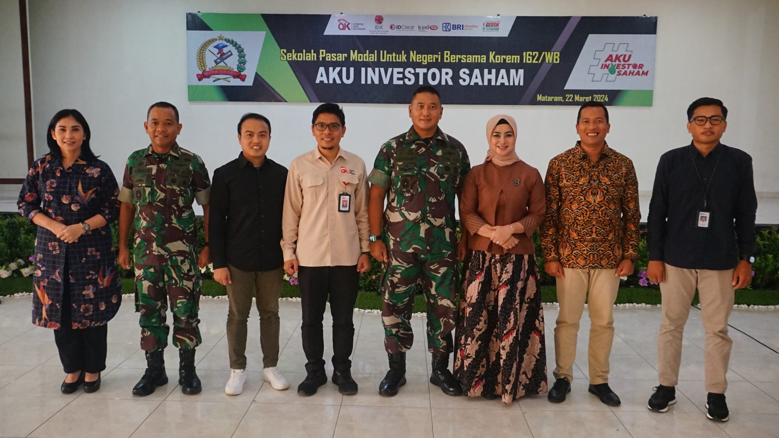 Mataram, NTB – Komandan Korem 162/Wira Bhakti, Brigjen TNI Agus Bhakti, S.I.P., M.I.P., M.Han., berkolaborasi bersama Otoritas Jasa Keuangan (OJK) NTB, Perwakilan Bursa Efek Indonesia NTB, dan Bright Securitas, berikan Sosialisasi dan Penyuluhan Investasi dan Keuangan kepada seluruh prajurit Jajaran Korem 162/Wira Bhakti di Aula Sudirman Makorem 162/Wira Bhakti, Jalan. Lingkar Selatan No. 162, Mataram, pada hari Jumat, 22 Maret 2024.