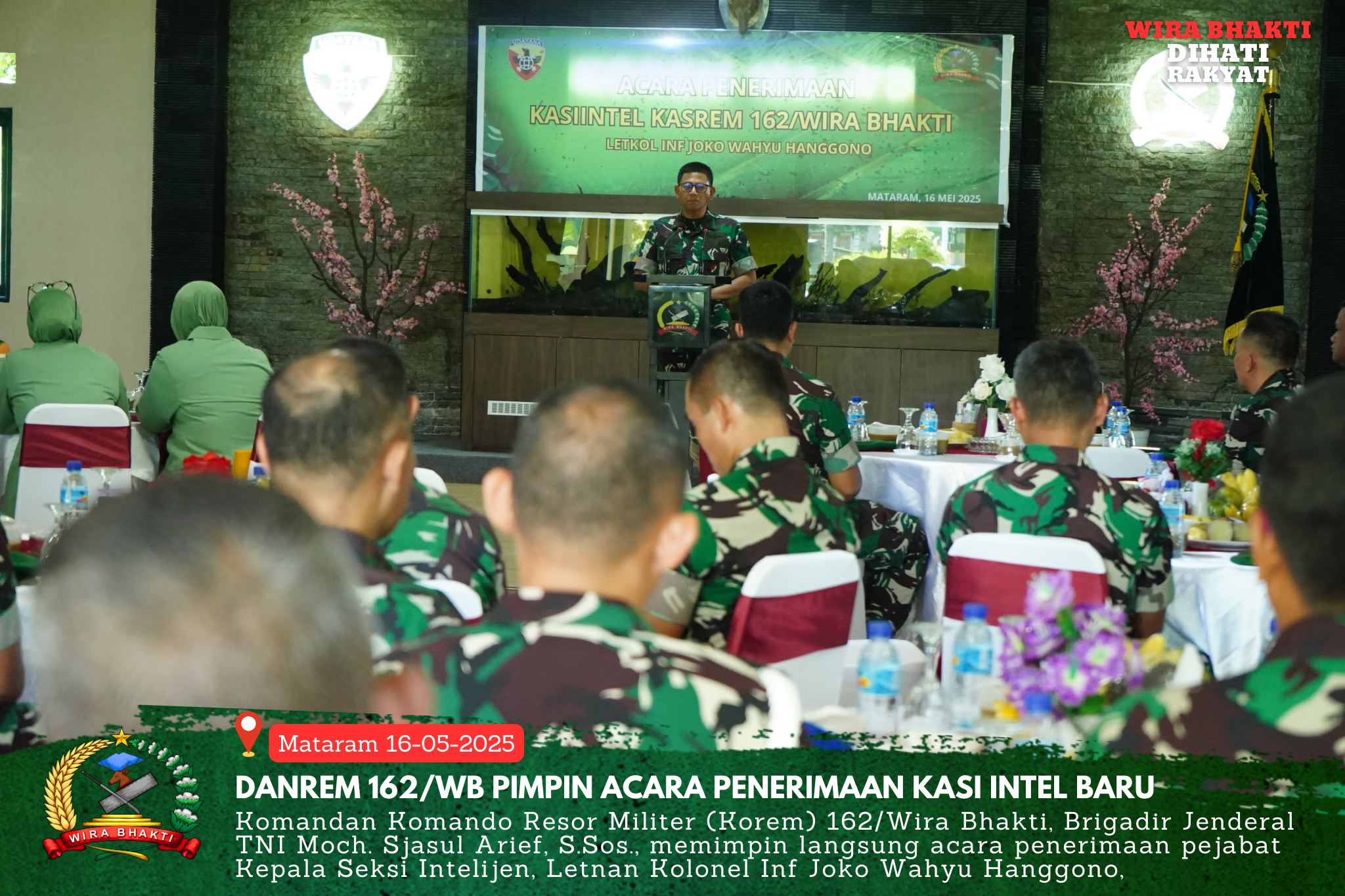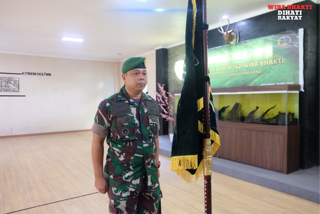 MATARAM, NTB – Komandan Komando Resor Militer (Korem) 162/Wira Bhakti, Brigadir Jenderal TNI Moch. Sjasul Arief, S.Sos., memimpin langsung acara penerimaan pejabat Kepala Seksi Intelijen, Letnan Kolonel Inf Joko Wahyu Hanggono, Jumat (16/5/2025).
