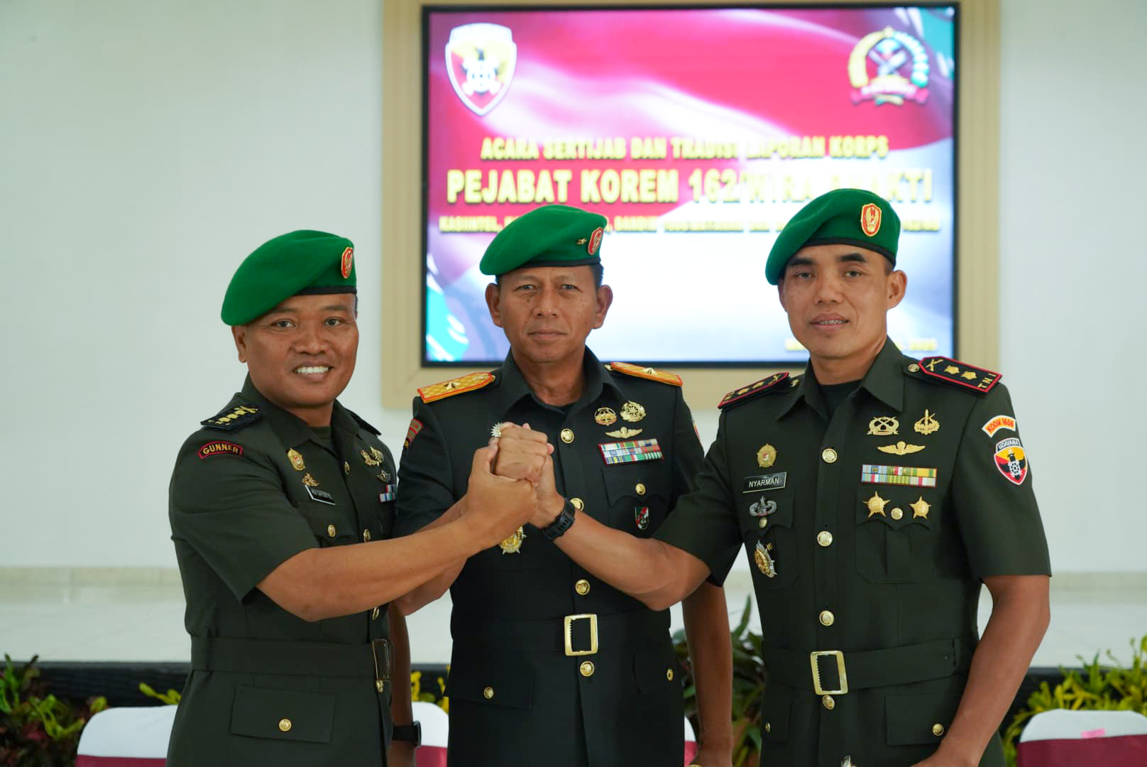 Pada kesempatan tersebut, Komandan Korem 162/Wira Bhakti atas nama seluruh jajaran menyampaikan penghargaan yang setinggi-tingginya kepada para pejabat lama atas dedikasi, loyalitas, dan pengabdian yang telah diberikan selama bertugas di Korem 162/Wira Bhakti. Pejabat yang melaksanakan serah terima jabatan yaitu Kolonel Czi Anto Indrianto, S.Sos., yang sebelumnya menjabat sebagai Kasi Intel Kasrem 162/Wira Bhakti, Kolonel Arm Heri Bayu Widiatmoko yang sebelumnya menjabat sebagai Kasi Log Kasrem 162/Wira Bhakti, Kolonel Arm Muh. Saifudin Khoiruzzamani, S.Sos., yang sebelumnya menjabat sebagai Dandim 1606/Mataram, Mayor Caj Orbyonson Amtiran, S.Pd., yang sebelumnya menjabat sebagai Dantim Intelrem 162/Wira Bhakti.