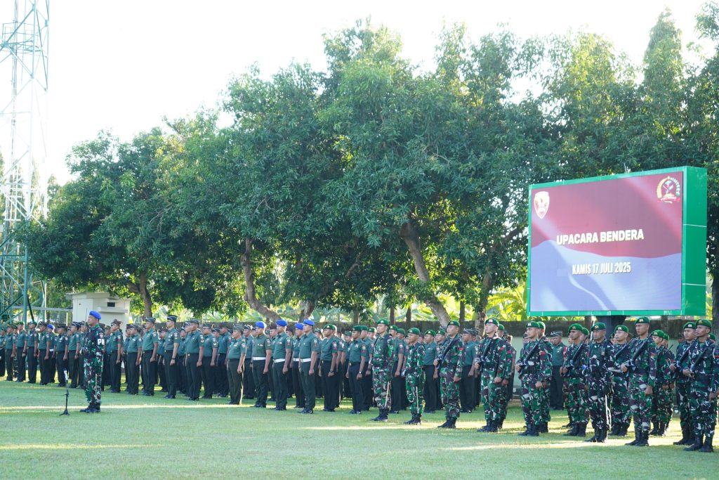 MATARAM, NTB – Komandan Korem 162/Wira Bhakti, Brigjen TNI Moch. Sjasul Arief, S.Sos, memimpin langsung Upacara Bendera 17-an yang berlangsung khidmat di Lapangan Gatot Subroto Makorem 162/WB, Jalan Lingkar Selatan Kota Mataram, Kamis (17/07/25). Upacara ini dihadiri oleh Pejabat Utama Jajaran Korem 162/WB, para Perwira, Bintara dan Tamtama serta PNS dari berbagai satuan jajaran Korem 162/WB.