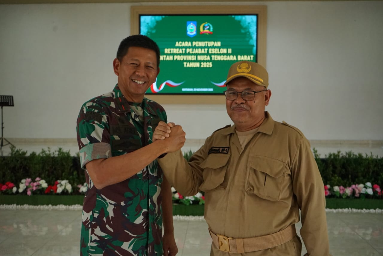 Dalam sambutannya, Danrem menegaskan bahwa retreat ini menjadi momentum penting bagi para pejabat eselon II untuk memperkuat ketahanan mental, integritas, serta kualitas kepemimpinan. Ia menyoroti bahwa dinamika birokrasi, tantangan pelayanan publik, dan kebutuhan pembangunan daerah memerlukan pemimpin yang mampu menjaga stabilitas emosi dan berpikir jernih dalam setiap situasi. “Pemimpin daerah harus memiliki ketenangan batin, kejernihan berpikir, dan komitmen moral yang kuat. TNI siap mendukung setiap upaya pemerintah daerah dalam membangun NTB yang aman, maju, dan berdaya saing,” ujar Brigjen Sjasul Arief.