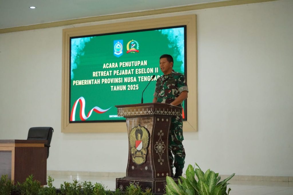 Mataram, NTB — Komandan Korem 162/Wira Bhakti Brigjen TNI Moch. Sjasul Arief, S.Sos., secara resmi menutup kegiatan Retreat Pejabat Eselon II Pemerintah Provinsi NTB Tahun 2025 yang berlangsung di Aula Sudirman Makorem 162/WB. Penutupan seluruh peserta, pejabat Pemprov, pelatih, pendukung, dan tamu undangan. Seluruh rangkaian acara berjalan aman, tertib, dan lancar.