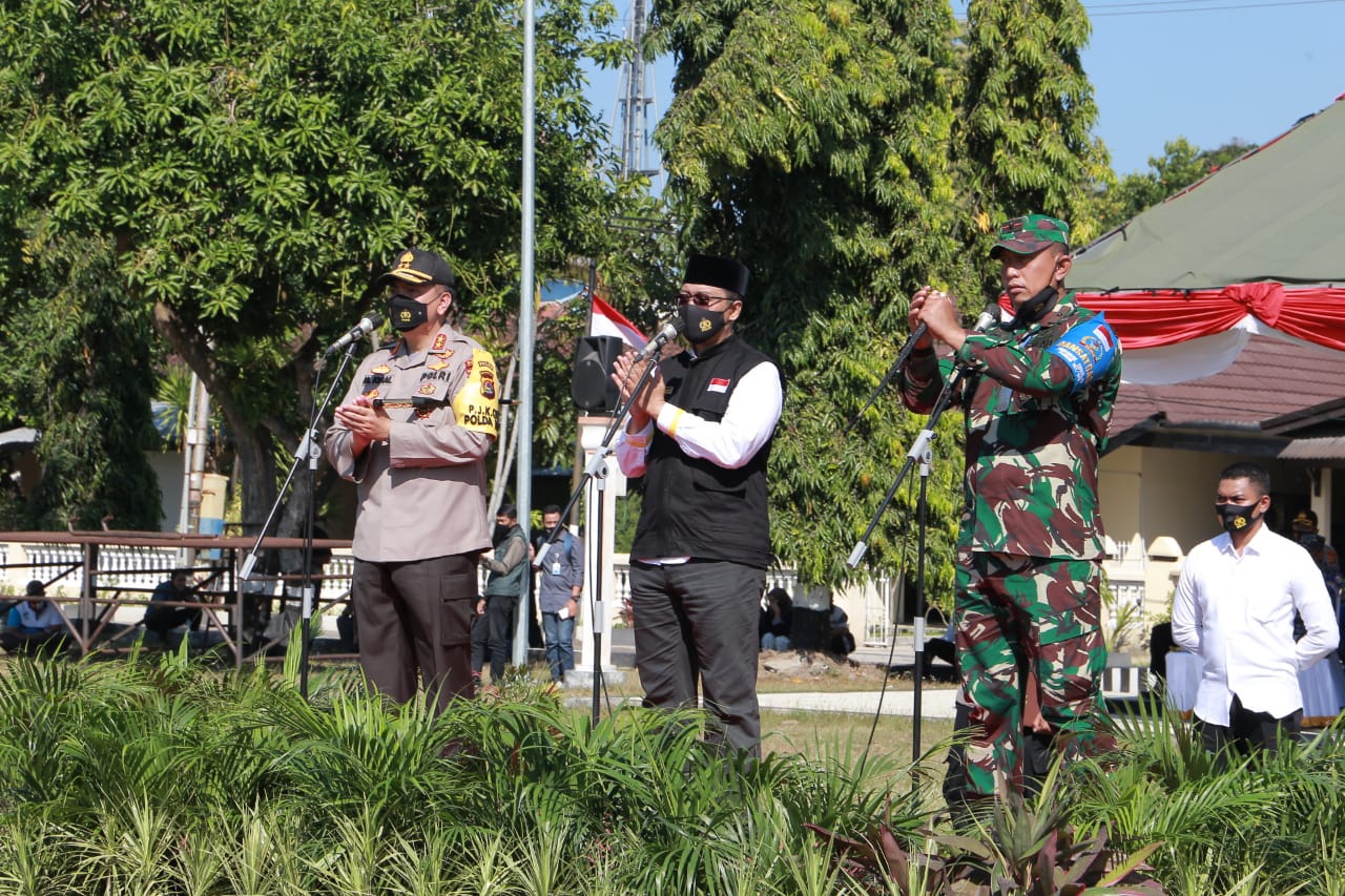 Mataram – Bertempat di Lapangan Gajah Mada Polda NTB Jalan langko no 77 kecamatan Ampenan Kota Mataram Prov NTB, telah berlangsung kegiatan Apel gabungan tiga pilar guna implementasi instruksi Presiden Republik Indonesia No 6 tahun 2020 dalam rangka Peningkatan disiplin dan penegakan hukum protokol kesehatan untuk pencegahan dan pengendalian corona virus desease 2019, secara umum di indonesia lebih khusus di wilayah Prov NTB.