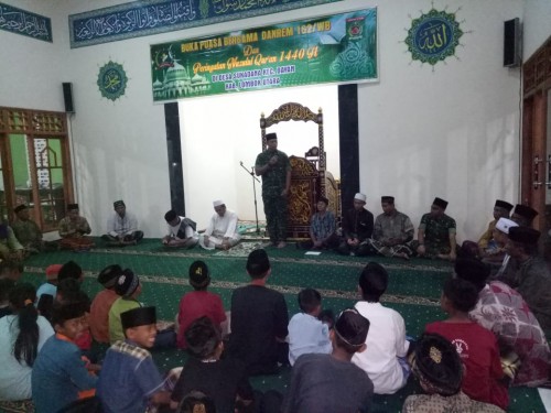 Acara buka puasa bersama dan peringatan Nuzulul Quran diakhiri dengan penyerahan bingkisan kepada anak-anak yatim Desa Sukadana oleh Danrem 162/WB.
