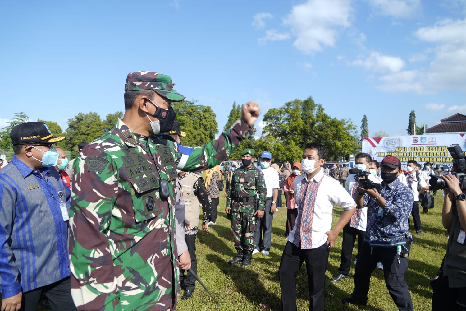Apel gelar pasukan Tim Vaksinator Kabupaten Lombok Barat (Lobar) Tahun 2021 yang dihadiri Kajati dan Kadilti NTB, Forkopimda Lobar, Kapolresta Mataram, para Kadis jajaran Pemda provinsi NTB dan kabupaten Lobar, Direktur RSUD Tripat dan RSUD Narmada Awet Muda, serta Forkopimca dan Kepala Puskesmas se Kabupaten Lobar dalam rangka percepatan laju vaksinasi untuk mencapai Herd Immunity guna mendukung penyelenggaraan World Superbike.