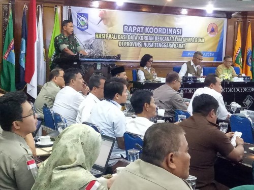 Untuk saat ini, lanjut Alumni Akmil 1993 tersebut, saat ini kami bersama Sekda NTB dan Kalak BPBD baik provinsi maupun Kabupaten Kota terdampak gempa mengadakan rapat dan evaluasi yang dihadiri para fasilitator, aplikator dan pejabat terkait.