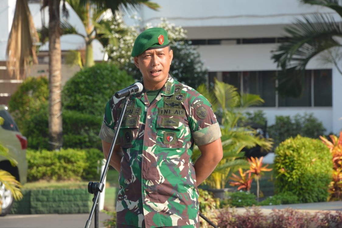Mataram – Komandan Korem 162/WB Kolonel Czi Ahmad Rizal Ramdhani, S.Sos. SH. M.Han., mengambil apel gelar pasukan dalam rangka siaga bencana banjir, tanah longsor dan angin puting beliung di wilayah Provinsi NTB tahun 2020 yang diikuti personel gabungan TNI, Polri, Satpol PP, Basarnas, BNPB, Tagana, Damkar, PLN, Senkom, Dinas Perhubungan, Fasilitator dan Pramuka di lapangan Bumi Gora Kantor Gubernur NTB, Selasa (14/1).