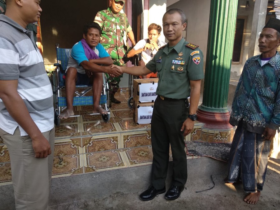 Pada kesempatan tersebut, Letkol Agus Setiandar menyampaikan bantuan ini dari Danrem 162/WB untuk warga korban keram saat menyelam baik yang cacat maupun lumpuh.