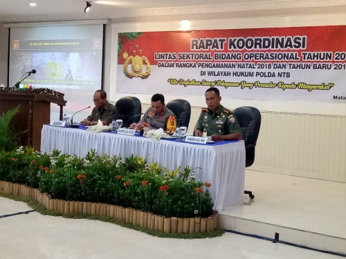 Sebelumnya kapolda NTb dalam sambutnya menyampaikan Konsentrasi massa pada saat perayaan Natal dan pergantian malam tahun baru 2019 akan terjadi di tempat-tempat ibadah, hiburan, wisata, rekreasi, gedung pertemuan, pusat kota, hotel dan tempat-tempat lainnya yang digunakan untuk perayaan. “Hampir seluruh seluruh masyarakat terlibat dalam kegiatan ini,” jelas Kapolda.
