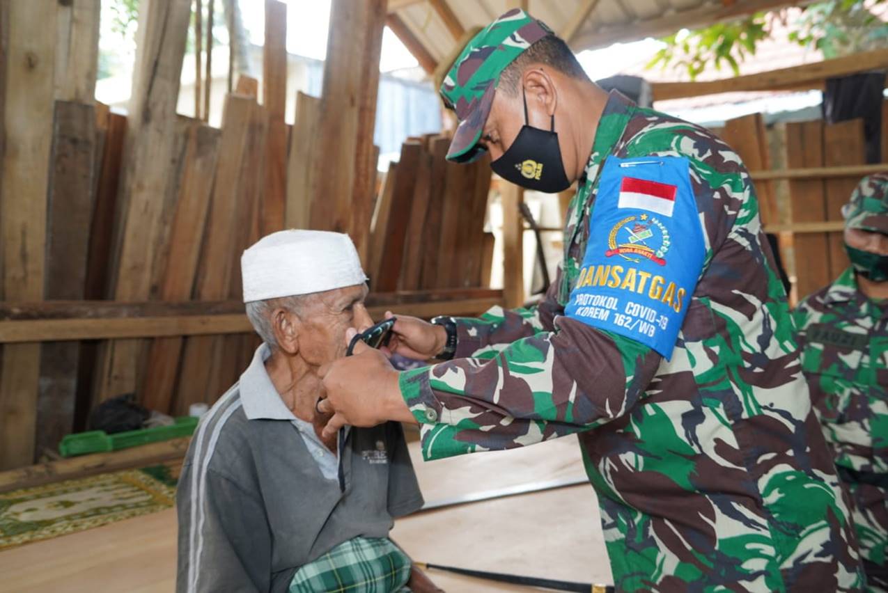 Selain itu, Danrem juga memberikan edukasi protokol kesehatan pencegahan covid-19 dan membagikan masker kepada masyarakat setempat termasuk prajurit dan tukang yang sedang bekerja.