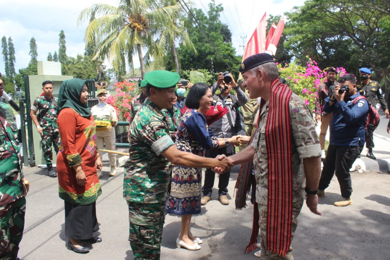 Danrem 162/WB Brigadir Jenderal TNI Sudarwo Aris Nurcahyo. S.sos., M.M bersama para Kasi Rem 162/WB, Dandim Se-Pulau Lombok , Dansat Disjan Korem 162/WB, Danlanud ZAM dan Danlanal Mataram secara langsung menerima kunjungan delegasi Military Attache Corps dari 20 negara itu di Makorem 162/WB.