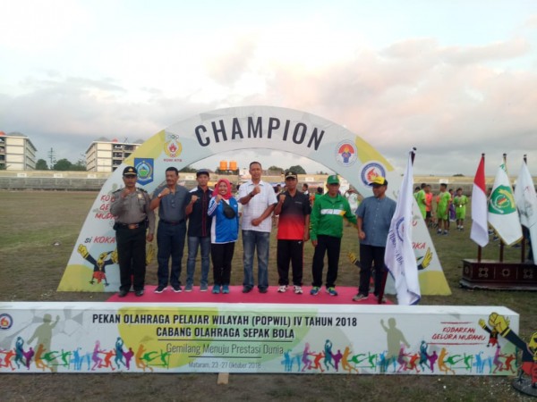 Mataram – Danrem 162/WB Kolonel Czi Ahmad Rizal Ramdhani, S.Sos. SH. M.Han., sore tadi, Sabtu (27/10) menutup Pekan Olahraga Pelajar Wilayah (Popwil) IV NTB tahun 2018 di Gedung Olahraga (Gor) Turide Kecamatan Sandubaya Kota Mataram.