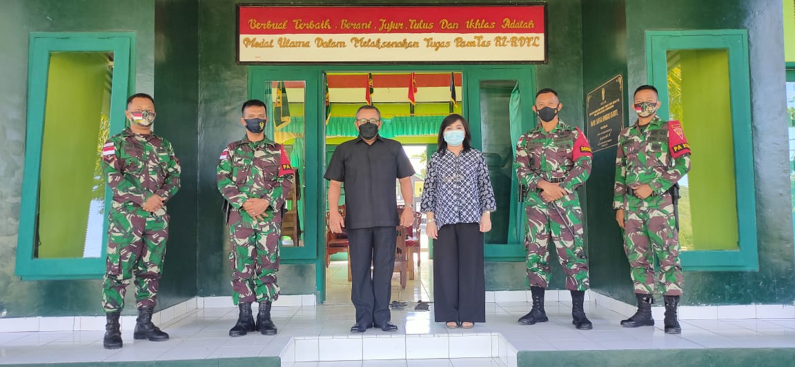 Belu NTT – Duta Besar Luar Biasa dan Berkuasa Penuh (LBBP) RI untuk negara Negara Republik Demokratik Timor Leste Sahat Sitorus bersama istri bertandang ke Mako Satgas Pamtas RI-RDTL Sektor Timur disambut hangat Komandan Satgas Pamtas Letnan Kolonel Inf Bayu Sigit Dwi Untoro bersama Wadan Satgas Mayor Inf Aditya Nugraha di Mako Satgas Kelurahan Umanen Kecamatan Atambua Barat Kabupaten Belu Nusa Tenggara Timur, Selasa (4/5/2021).