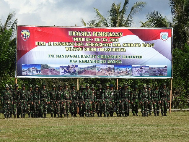 Tentara menunggal masuk desa (TMMD) ke 101 tahun 2018 dibuka secara serentak diseluruh wilayah Negara Kesatuan Republik Indonesia hari ini salah satunya di Provinsi NTB tepatnya di Kabupaten Sumbawa Barat (KSB), Rabu (4/4).