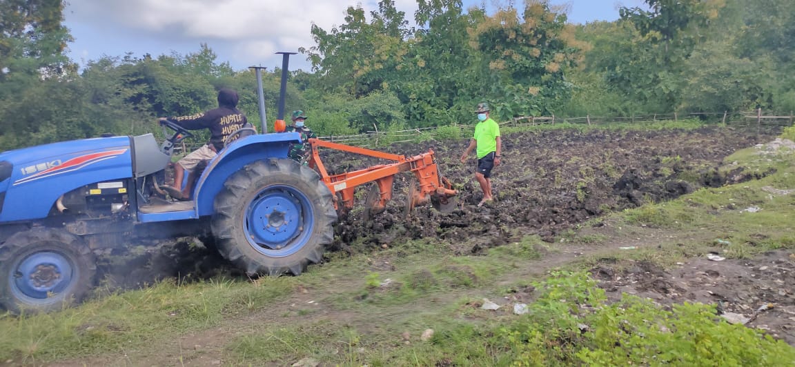 Pembongkaran tanah bekerjasama dengan Dinas Pertanian Kabupaten Belu menggunakan traktor untuk mempermudah proses pengolahan tanah hingga siap untuk ditanami.