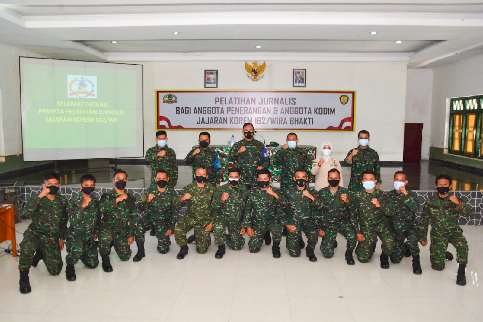 Dalam rangka mendukung tugas pokok satuan dibidang penerangan, Korem 162/WB menggelar pelatihan dasar-dasar jurnalistik yang diikuti personel Penerangan Korem dan perwakilan masing-masing Kodim jajaran Korem 162/WB di Aula Sudirman Makorem 162/WB jalan Lingkar Selatan Kota Mataram, Selasa (24/8/2021).