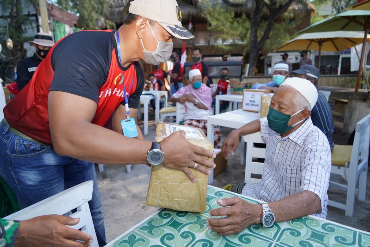 Lombok Utara – Korem 162/WB menggelar bakti sosial pembagian paket sembako yang dirangkai dengan silaturahim dan ramah tamah bersama Forkompinda Kabupaten Lombok Utara (KLU), Tokoh Masyarakat, dan Pengusaha Wisata di wilayah Gili Trawangan, bertempat di Dusun Gili Trawangan Desa Gili Indah, Kecamatan Pemenang, Kabupaten Lombok Utara, Jumat (21/8/2020).