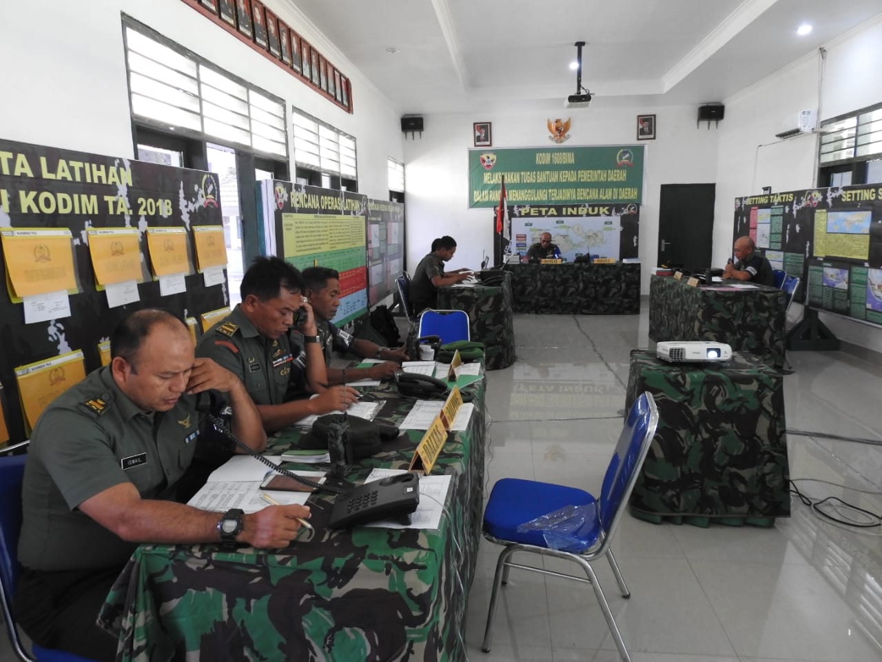 Kodim 1608/Bima selama tiga hari kedepan menggelar latihan Gladi Posko I tahun 2018 di Makodim 1608/Bima tentang penanganan bencana alam di wilayah Kabupaten/Kota Bima, Selasa (5/6).