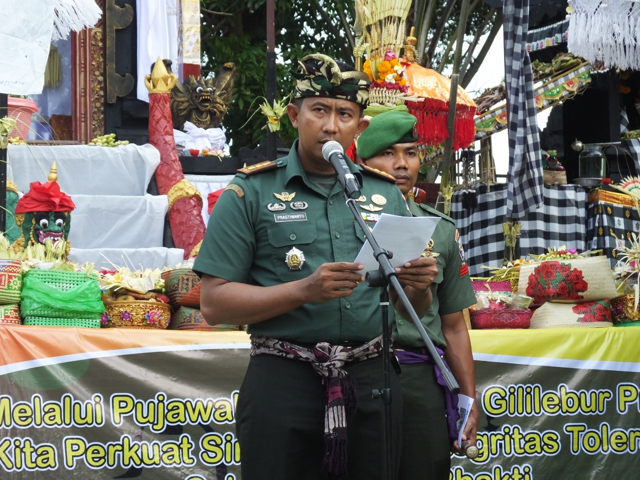 Dalam sambutannya, Dandim 1620/Loteng menyampaikan keberadaan pura Prajaniti di asrama Kodim Gili Lebur merupakan simbol toleransi kehidupan beragama dan contoh yang bagus untuk menjaga hubungan persaudaraan, persatuan dan kesatuan dengan saling menghormati dan menghargai satu dengan yang lainnya.
