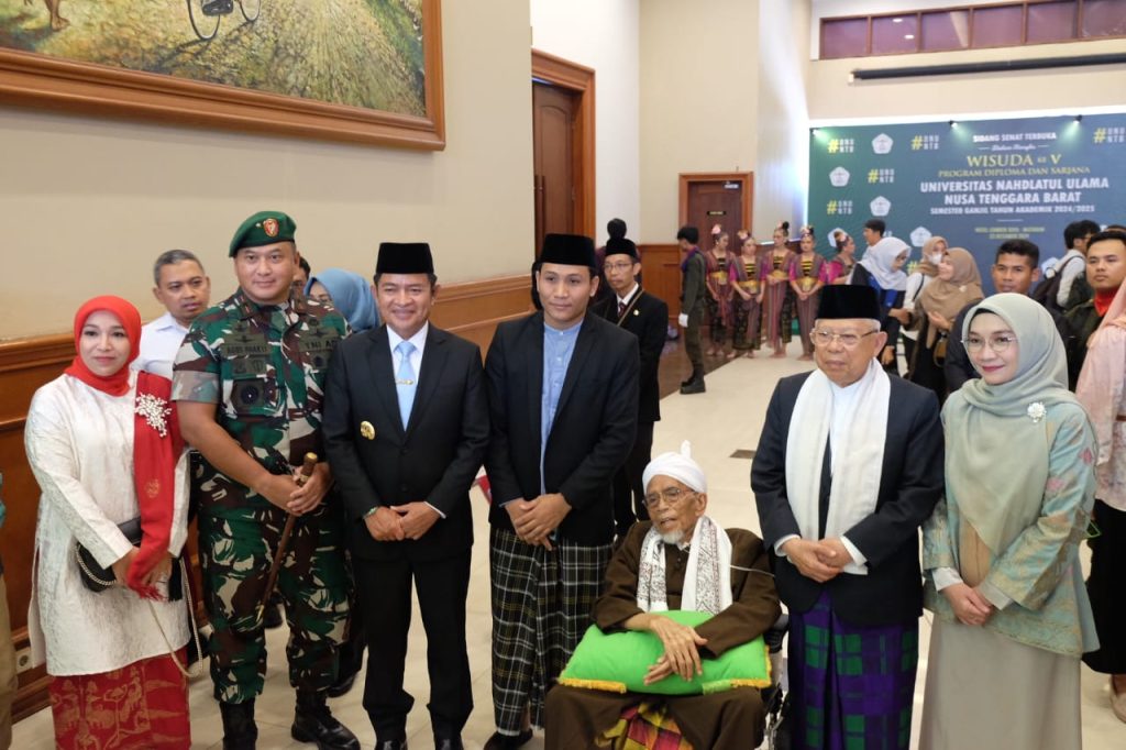 Acara ini menjadi momen istimewa dengan kehadiran Mantan Wakil Presiden RI, Prof. Dr. KH. Ma’ruf Amin, M.A., sebagai tamu kehormatan. Selain itu, sejumlah tokoh penting turut hadir, seperti Penjabat Gubernur NTB Mayjen TNI (Purn.) Dr. Hassanudin, S.I.P., M.M., dan Ketua PWNU NTB Prof. TGH. Masnun Tahir, yang memberikan makna mendalam pada perayaan akademik ini.