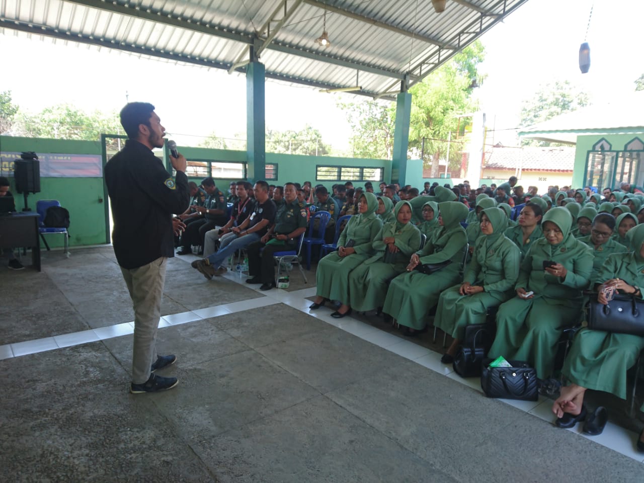 Bima – Kodim 1608/Bima menyelenggarakan penyuluhan pencegahan pemberantasan penyalahgunaan dan peredaran gelap narkotika (P4GN), sosialisasi UU Nomor 19 tahun 2016 tentang perubahan atas UU Nomor 11 Tahun 2008 tentang ITE dan penggunaan media sosial secara bijak yang diikuti seluruh anggota Kodim 1608/Bima beserta istri dan PNS di aula Makodim Bima, Senin (1/11).
