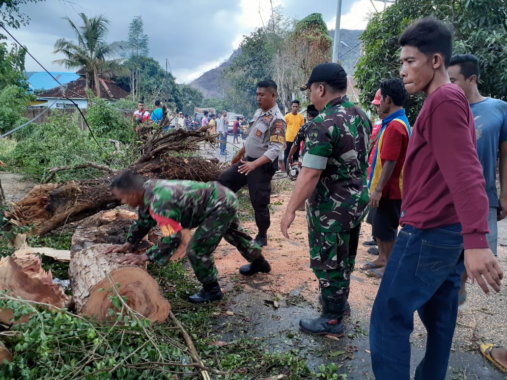 Khusus untuk pohon tumbang, lanjut Dandim, ada di lima titik di Desa Tente Naru sehingga pengguna jalan dari dua arah tidak bisa melintas karena terhalang batang pohon.