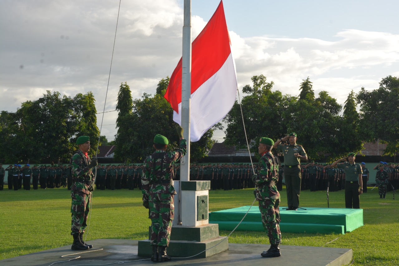 Mataram – Upacara bendera awal tahun di Makorem 162/WB terlihat berbeda dari sebelumnya, seluruh anggota baik militer maupun PNS se Garnizun Mataram terlihat semangat dan khidmat mengikuti rangkaian upacara bendera.