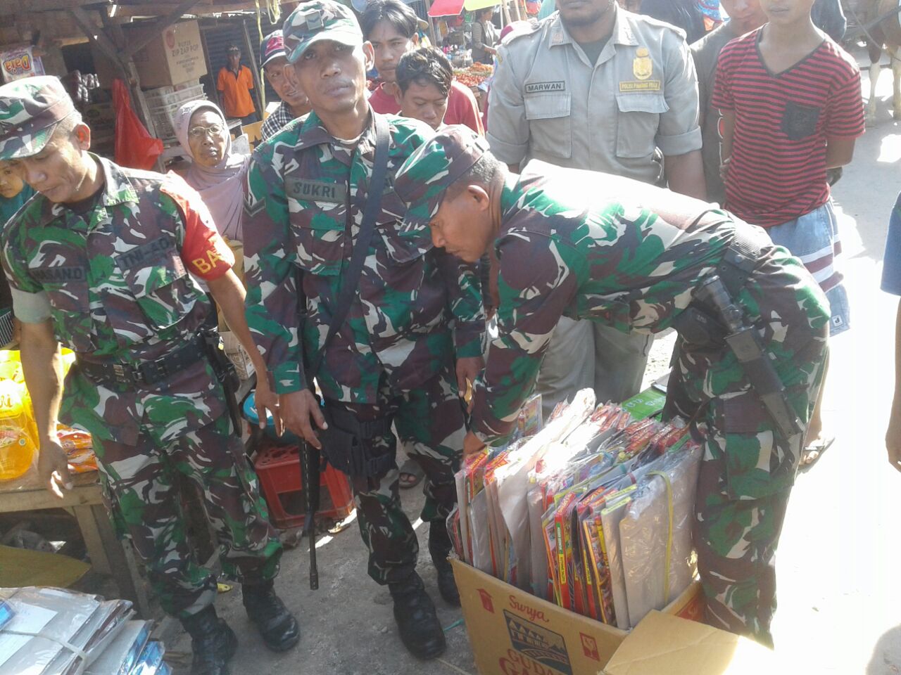 Aparat gabungan dari Koramil 1608-04/Woha, Polsek Woha dan Satpol PP Kecamatan Woha melaksanakan razia gabungan di pasar dan terminal Tente Desa Tente Kecamatan Woha Kabupaten Bima, Sabtu (19/5).