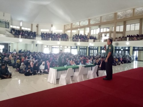 Mataram – Kepala Staf Korem 162/Wira Bhakti, Letkol Inf Endarwan Yansori berikan kuliah umum tentang Wawasan Kebangsaan kepada para Mahasiswa pada kegiatan Pembekalan KKN Pemberdayaan Bidang Kebencanaan Lembaga Penelitian dan Pengabdian pada Masyarakat di Gedung Auditorium Universitas Mataram (Jum’at, 21/10/2018)