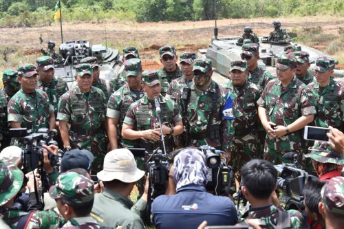 Baturaja – Kepala Staf Angkatan Darat (Kasad), Jenderal TNI Mulyono menyaksikan langsung Latihan Antar Kecabangan (Latancab) TNI AD TA. 2018 di daerah latihan Pusat Latihan Tempur (Puslatpur), Kodiklatad, Baturaja, Sumatera Selatan (Sumsel), Kamis (15/11/2018).